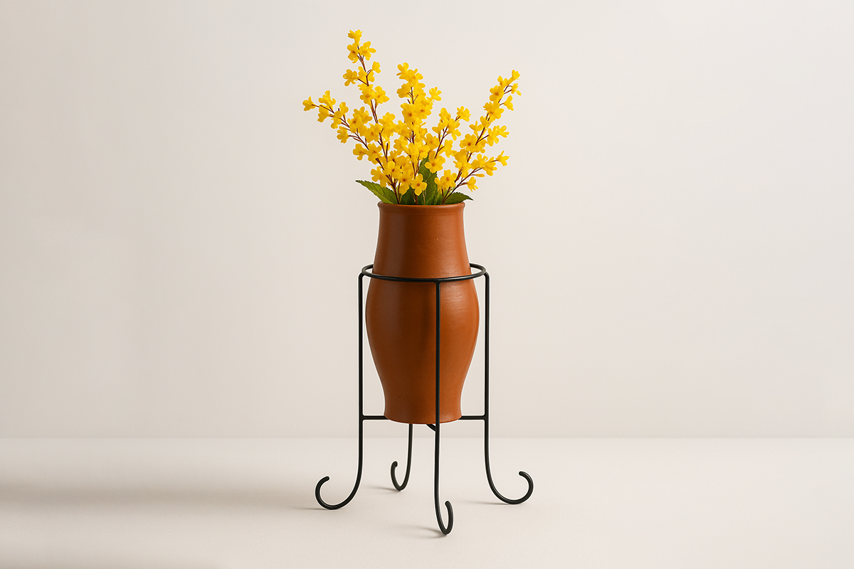 Pots de fleurs en terre support fer forgé